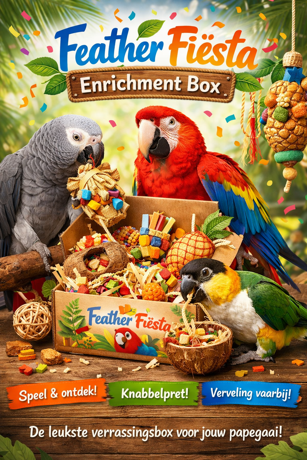 Geef jouw papegaai een moment van échte ontdekking, spel en uitdaging!